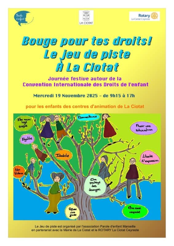 Pour célébrer la Convention Internationale des Droits de l’Enfant, l’association Parole d’enfant, organise chaque année au mois de novembre, depuis 2006, une manifestation qui rassemble les enfants des centres sociaux et d’animation de Marseille pour un moment festif et de sensibilisation.