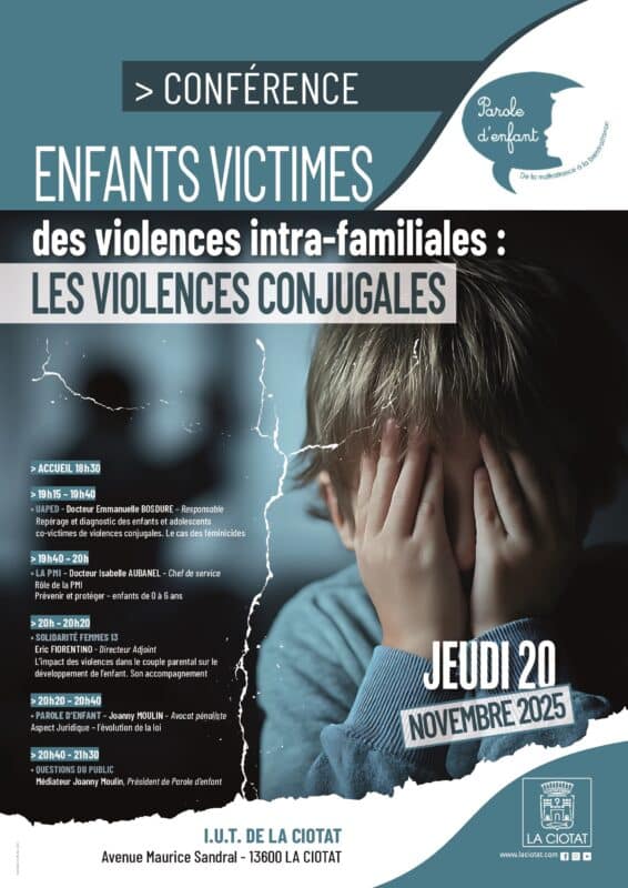 20 novembre 2025 Conférence organisée par Parole d'enfant à l'I.U.T de La Ciotat: Enfants victimes des violences intrafamiliales: les violences conjugales